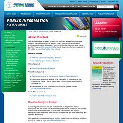 ACSM Journals from www.acsm.orgJts is a novel journal that will focus upon the translation of cellular.